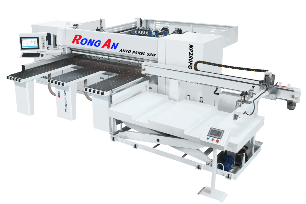 侧面自动上料数控裁板锯是上海容安木工机械设备有限公司专为板式家具及装饰建材行业研发的智能化裁板设备。该设备在传统电脑裁板锯的基础上,配备了自动上料系统,可实现板材从上料、定位到切割的一体化自动操作,显著提升生产效率和加工精度。